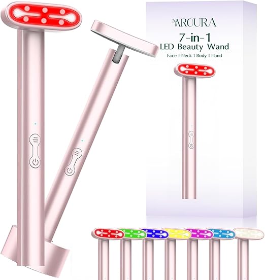 Aroura Beauty Light-Therapy Wand, Red Light Therapy for Face and Neck, 7in1 LED Beauty Wand, Red & Blue Rejuvenation, Face & Eye Massager Skincare Tool, Anti-Aging, Wrinkle Reduction, Skin Tightening