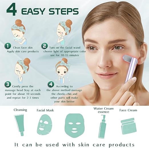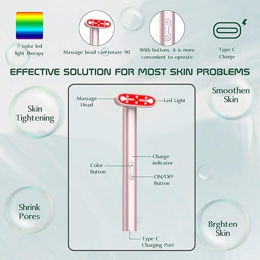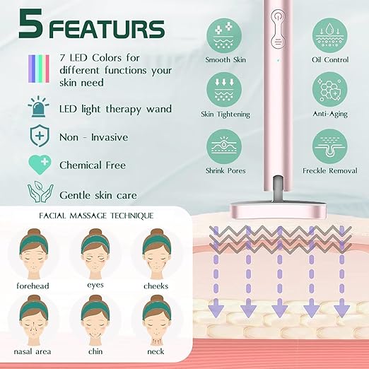 - Multi-Color LED Therapy: Each of the seven colors has a unique effect, designed to meet various beauty needs without causing side effects. This LED beauty wand is healthy, safe, and easy to use, making it perfect for those looking for a comprehensive skincare solution. Whether you need to brighten your complexion, reduce redness, or minimize the appearance of pores, this tool has got you covered.